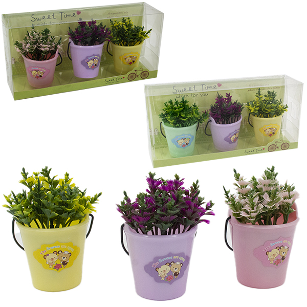 Цветы искусственные в фигурном горшке (набор 3шт) 21*10см