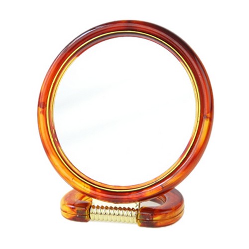 Настольное зеркало классической круглой формы в пластмассовой оправе на подставке. Наклон зеркала регулируется.