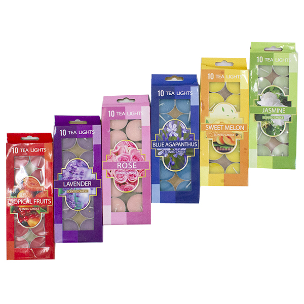 Свеча чайная цветная, с запахом (набор 10шт)