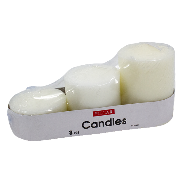 Свеча декоративная Ø-7см h-4/6/8см (набор 3шт)