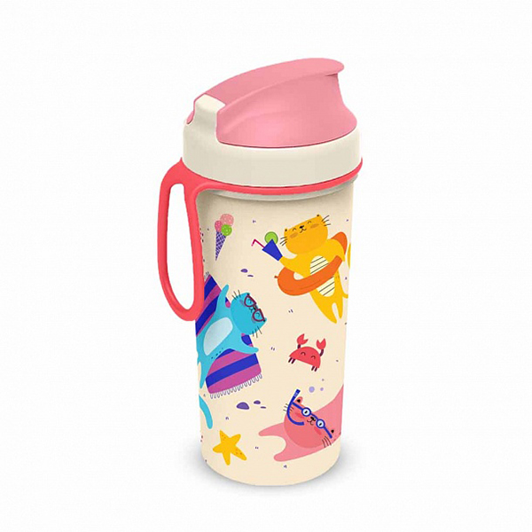 Стакан детский с декором и петлей 400мл (розовый) (то)