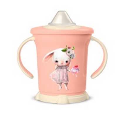 Поильник с ручками и декором 270мл (светло-розовый) (то)