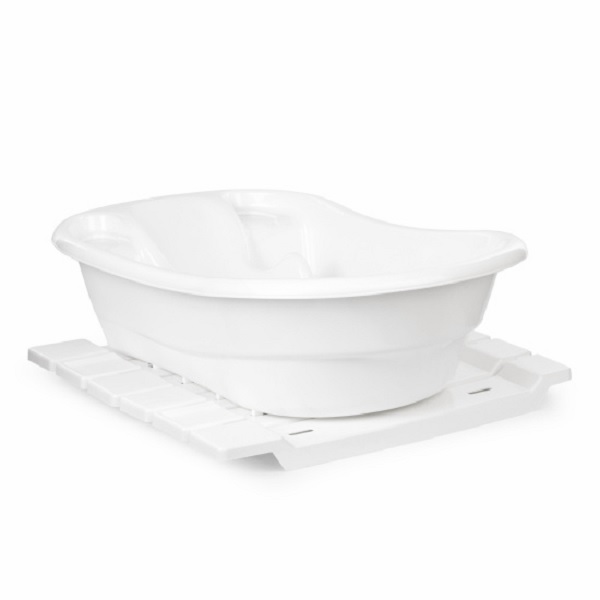 Набор предназначен для купания детей с рождения до 1 года. В комплект входят ванна и две полки , которые одновременно выполняют функцию подставки. При установке ванны на полки её можно зафиксировать на уровне ванны — это исключает необходимость наклоняться во время купания.