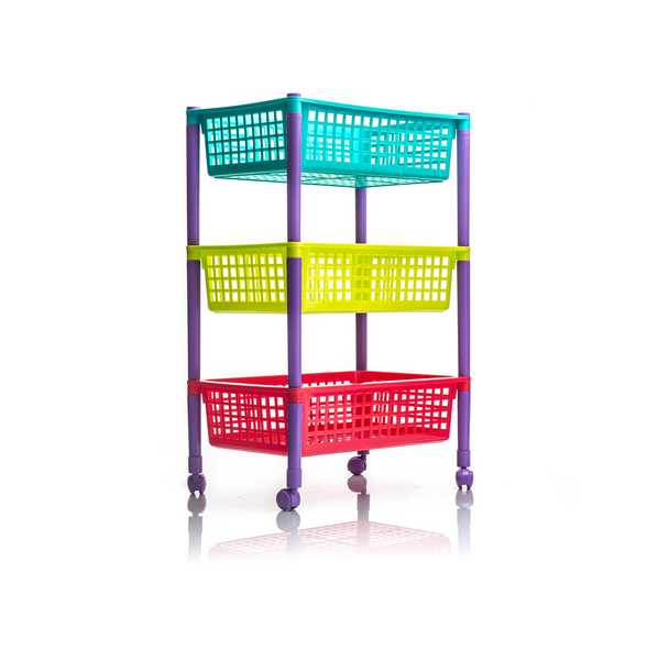 Контейнер состоит из трех глубоких равных по размеру ящиков, в которые легко поместятся как маленькие, так и объемные предметы детской игры. Ящики крепятся к прочным основаниям, имеющим на конце по колесу. Колеса мягкие, гладкие, не царапают поверхность пола.
