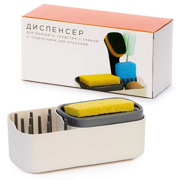 Диспенсер для моющего средства с губкой и отделением для хранения (белый)(то)