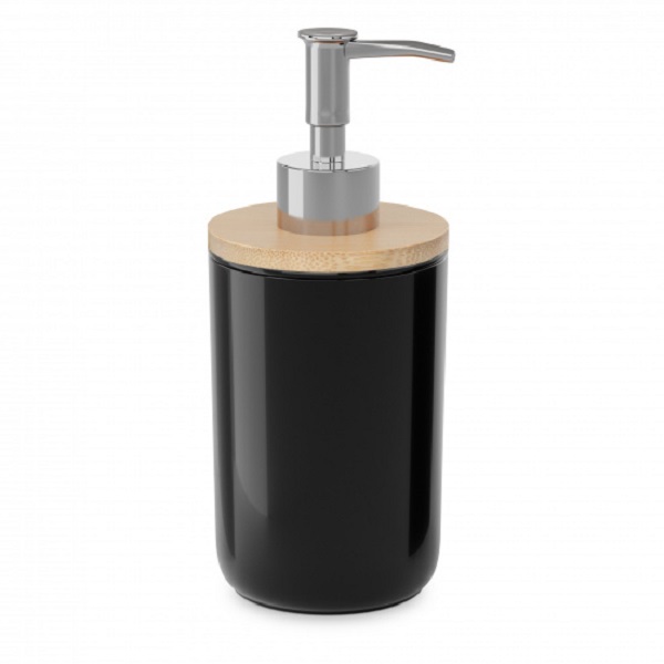 Дозатор для жидкого мыла изготовлен из качественного пластика, а вставка произведена из натурального растительного материала - бамбук.