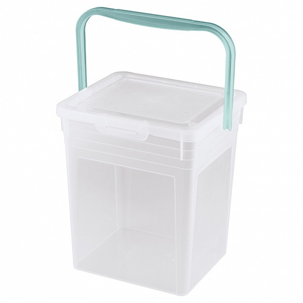 Ведро для хранения стирального порошка — отличная альтернатива открытым пакетам и коробкам, которые могут промокнуть. Ведро гармонично впишется в ванную комнату и не займет много места. Крышка надежно фиксируется защелкой. Благодаря прозрачным стенкам видно, сколько порошка осталось в ведре. Корпус оборудован удобной ручкой.