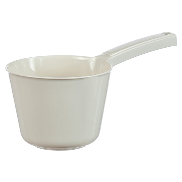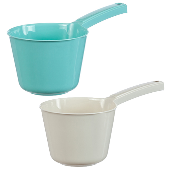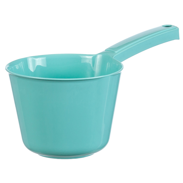 У ковша есть два носика для слива, что удобно для правшей и для левшей. Внутри есть мерная шкала в литрах.