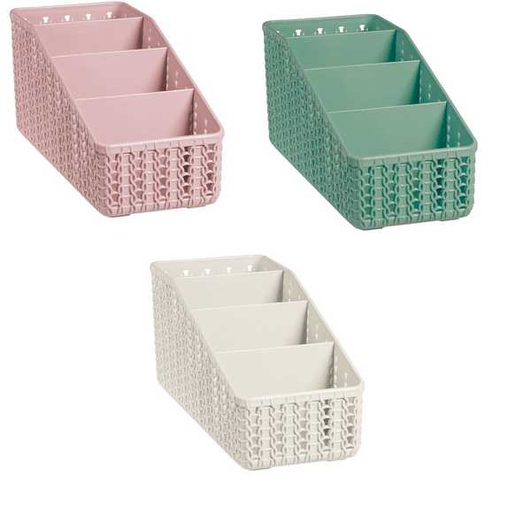 Органайзер имеет четыре отделения разной высоты. Подойдет для хранения: специй, столовых приборов, канцелярии, косметики