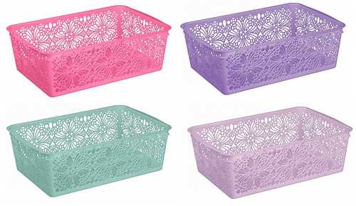 Корзинка Floral выпускается в четырёх элегантных цветах, и каждая хозяйка сможет выбрать корзинку себе по вкусу. При этом компактный размер позволяет поместить корзинку на любую полку.