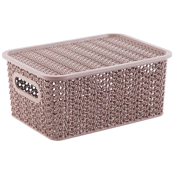 Корзинка "Вязь" 3л 235х173х105мм с крышкой (розовый нюд) (то)