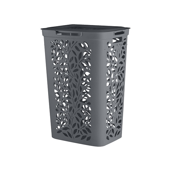 Корзина Leaves 60л с крышкой 440х340х635мм (серый)(то)