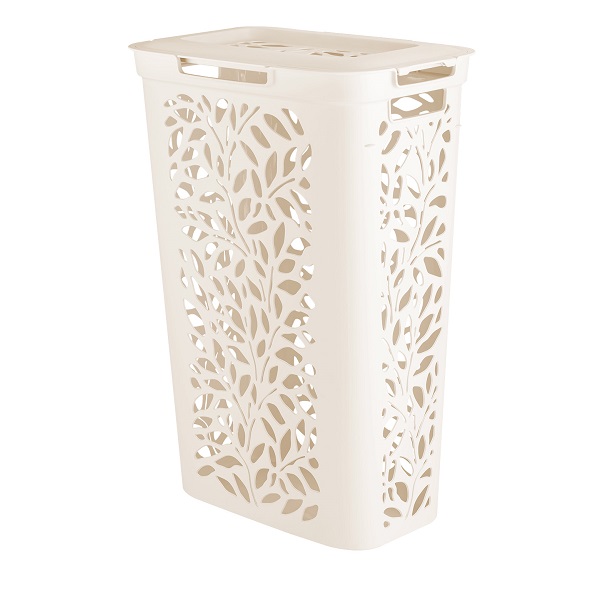 Корзина Leaves 40л с крышкой 440х275х635мм (молочный)(то)