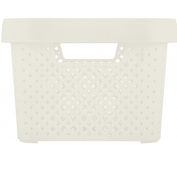Корзина имеет удобные для переноски ручки-вырезы по бокам корпуса. Крышка на корпусе сохранит визуальный порядок, скрывая и защищая содержимое сверху.