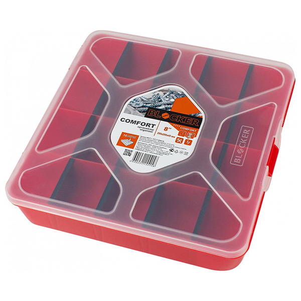 Органайзер для мелочей помогает содержать в порядке, переносить на место выполнения работ и быстро находить метизы и аксессуары. Идеален для использования дома, на даче, в гараже, мастерской, в автомобиле. Внутреннее деление на отсеки делает удобным размещение внутри органайзера деталей, которые необходимо отделить друг от друга. 16 съёмных перегородок позволяют изменять размер отсеков под личные нужды. Прозрачная крышка позволяет увидеть содержимое, не открывая органайзер. Имеется петля для подвеса. Подходит для хранения рыболовных и швейных принадлежностей, коллекционирования, занятия хобби.