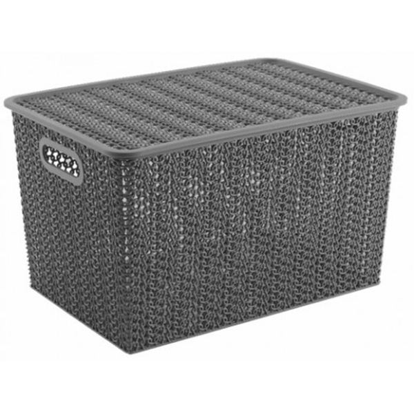 Корзинка "Вязь" 14л 350х245х205мм с крышкой (серый) (то)