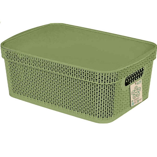 Корзина для хранения Keeplex Green Republic с крышкой 5л 28,1х18,5х13,9см с изящным плетением напоминающим уютный вязаный шарф отлично подойдет для хранения различных бытовых мелочей в ванной, гостиной, прихожей и даже на кухне. Корзинка изготовлена из пищевого пластика, её можно использовать для хранения продуктов, к примеру, сладостей или фруктов. Еще один вариант использования - сервировка стола. Плоская крышка позволяет удобно установить корзины одну на другую, организовав полноценную систему хранения. Green Republic - это эко-направление, разделяющее принципы сокращения потребления, отказа от лишнего, переработки отходов, возобновления ресурсов и повторного использования. Габариты: 281х185х139 мм.