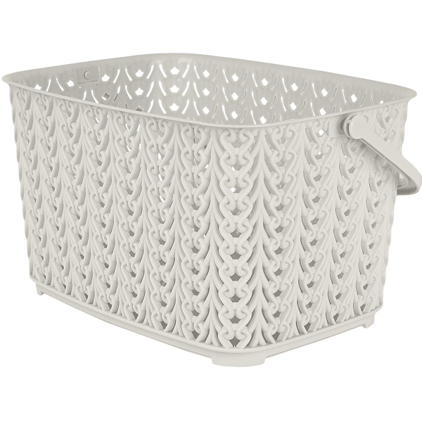 Линия аксессуаров Меланж, в состав которой входит корзинка для хранения с ручкой "Меланж" 3 л, поможет организовать пространство в едином стиле. Вязаное, ажурное плетения и пастельные цвета впишутся в любой интерьер. Сложить разнообразные мелочи, бельевые прищепки, косметику или ванные принадлежности – для всего пригодится корзинка «Меланж». Сэкономить место в ванной можно благодаря ручке с крючком, за который, при необходимости, ее можно подвесить. Корзина изготовлена из легкого и прочного пластика, поэтому подойдет для помещений с повышенной влажностью. Безопасный материал пригоден для хранения пищевых продуктов и детских игрушек. Сэкономить пространство поможет прямоугольная форма корзинки.