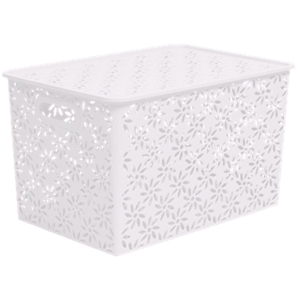 Корзинка "Ромашки" 14л 350х245х205мм с крышкой (белый) (то)