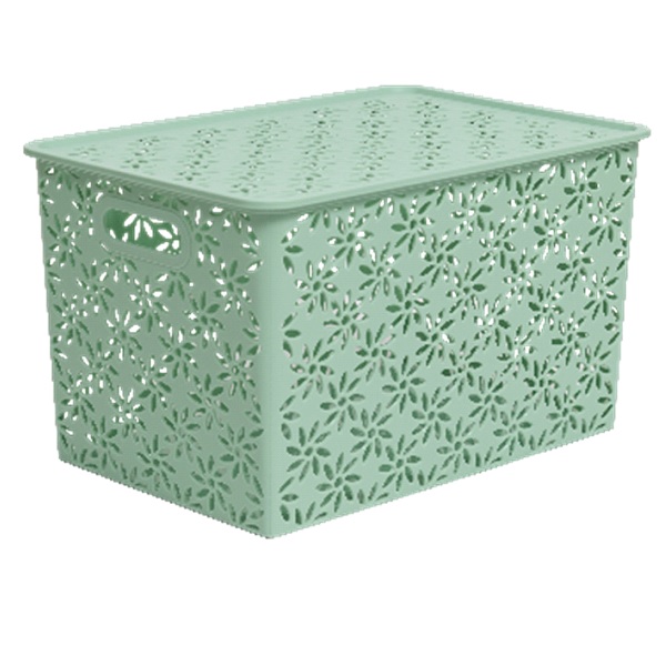 Корзинка "Ромашки" 14л 350х245х205мм с крышкой (нефрит) (то)