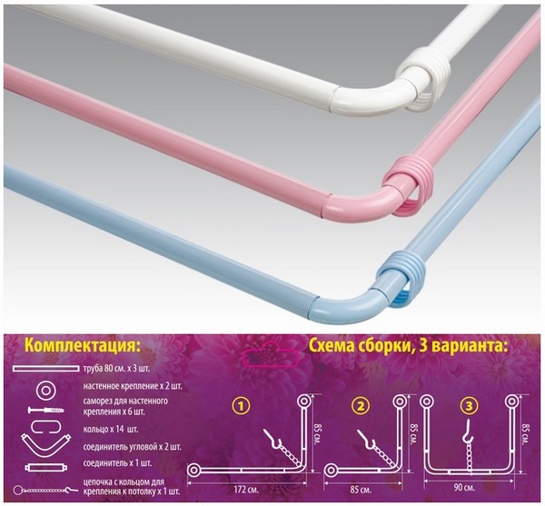 Карниз для ванной комнаты угловой 260см (голубой) (хпп) (то)