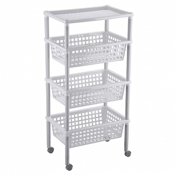 Этажерка «Элиза» имеет форму и размер, которые позволяют рационально использовать пространство кухни, ванной комнаты и других помещений. Идеально подходит для хранения овощей и фруктов, а также повседневных мелочей, средств гигиены и бытовой химии, газет и журналов. Имеются колесики, которые обеспечивают комфортное перемещение этажерки.