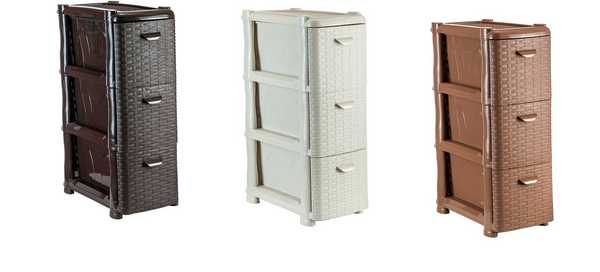 Новые вместительные и красивые комоды, стилизованные под плетеное изделие В отличие от плетеных изделий имеют плавные линии, без углов и зазубрин Вместительные комоды помогут разложить по местам нужные вещи Устойчивый корпус, прочные ручки, простота сборки отличают комоды IDEA Благородные цвета станут украшением как классического, так и современного интерьера Материал: полипропилен