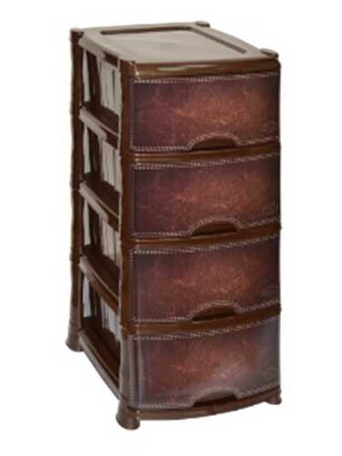 Комод 4-х секц декор КОЖА /корич.ротанг/ 39х47х95см