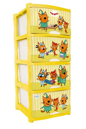 Вместительный, современный и удобный комод c 4 ящиками с удобными ручками идеально подойдет для детской комнаты. Сглаженные углы и облегченная конструкция комода безопасны даже для самых активных малышей. Герои анимационного сериала ТРИ КОТА порадуют детей.