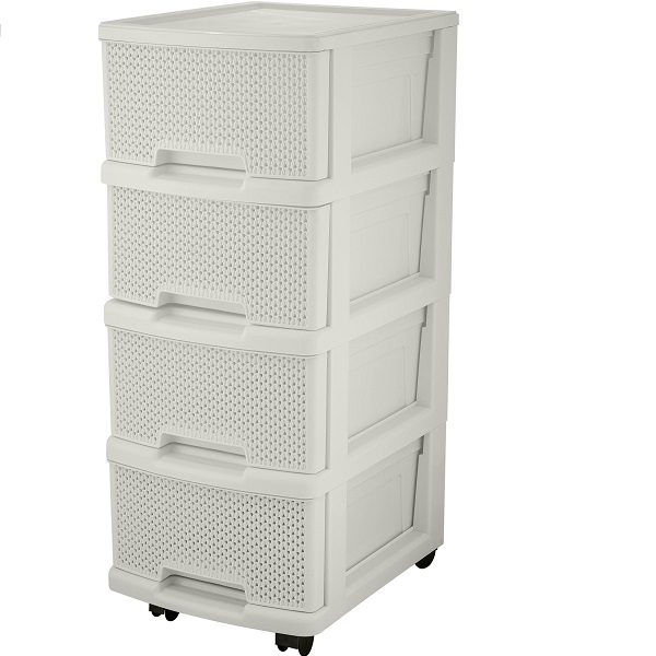 Комод Keeplex Ajur с ящиками на колесиках четырехсекционный компакт 37х30х73см идеально подойдет для организации хранения в гостиной, ванной комнате, прихожей или кухне. Компактный размер позволяет удобно разместить комод в небольших помещениях. По ширине идеально подходит под формат бумаги А4. Спереди остается еще ~3 см для захвата стопки бумаги, и чтобы вынуть ее. Колесики для удобного перемещения комода во время уборки или перепланирования пространства. Уютный декор Ajur - ажурная фактура вязания будет прекрасным дополнением к другим изделиям из коллекции бренда Keeplex. Самое ажурное и легкое плетение в стиле вязания из всех, представленых на рынке. Габариты в собранном виде: 370х300х730 мм.