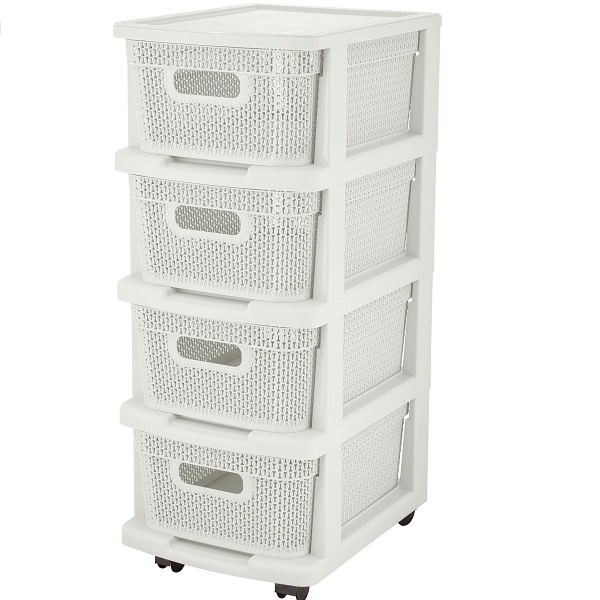 Комод Keeplex Ajur с корзинами на колесиках четырехсекционный компакт 37х30х73см идеально подойдет для организации хранения в гостиной, ванной комнате, прихожей или кухне. Компактный размер позволяет удобно разместить комод в небольших помещениях. По ширине идеально подходит под формат бумаги А4. Спереди остается еще ~3 см для захвата стопки бумаги, и чтобы вынуть ее. Колесики для удобного перемещения комода во время уборки или перепланирования пространства. Инновационная комплектация с корзинами, которые можно полностью вынимать из комода для облегчённого доступа к содержимому или для использования корзин как самостоятельного предмета интерьера. Уютный декор Ajur - ажурная фактура вязания будет прекрасным дополнением к другим изделиям из коллекции. Самое ажурное и легкое плетение в стиле вязания из всех, представленых на рынке. Габариты в собранном виде: 370х300х730 мм.