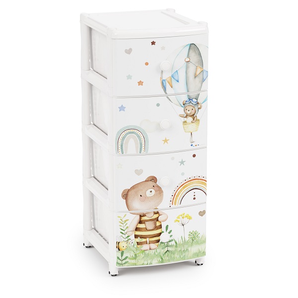 Комод 4-х секционный "Мишутки" (белый)(то)
