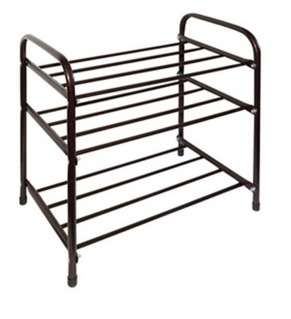 Этажерка для обуви 3-х ярусная трубка (коричневая)(хпп) (то)