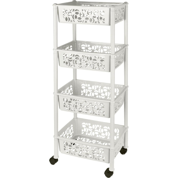 Этажерка Keeplex Light на колесиках четырехсекционная прямоугольная 37х29х93,5м - это эффективное и недорогое решение для организации хранения в небольших помещениях, на кухне, в ванной, на балконе или лоджии, в кладовой или на даче. Отличительная особенность этажерки - высокие бортики, которые позволят сохранить вещи в безопасности. Напольная этажерка состоит из четырех полок. Габариты этажерки в собранном виде 370х290х935 мм, она собирается без инструментов за несколько минут, достаточно соединить стойки и полки, вставить ножки и заглушки. Вместительные полки применяются для хранения большого количества хозяйственных мелочей. На нижних ножках предусмотрены колесики, ее легко выдвигать и устанавливать на место. Оригинальный дизайн. Входит в коллекцию бренда Keeplex "Light", что позволяет подобрать различные предметы для дома в едином стиле.