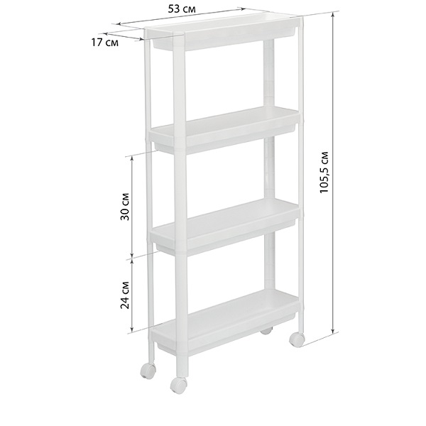 Этажерка узкая на колесах (4 секции)(белый)(то)