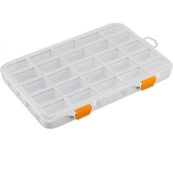 Органайзер для мелочей помогает содержать в порядке, переносить на место выполнения работ и быстро находить метизы и аксессуары. Идеален для использования дома, на даче, в гараже, мастерской, в автомобиле. Внутреннее деление на отсеки делает удобным размещение внутри органайзера деталей, которые необходимо отделить друг от друга. Съёмные перегородки позволяют изменять размер отсеков под личные нужды. Прозрачная крышка позволяет увидеть содержимое, не открывая органайзер. Имеется петля для подвеса. Благодаря плотно прилегающей крышке, исключающей смешивание содержимого, органайзер подходит для хранения самых мелких деталей, в том числе для рыболовных и швейных принадлежностей, коллекционирования, занятия хобби.