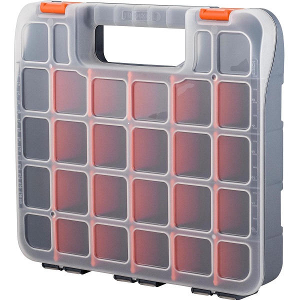 Органайзер для мелочей помогает содержать в порядке, переносить на место выполнения работ и быстро находить метизы и аксессуары. Идеален для использования дома, на даче, в гараже, мастерской, в автомобиле. Внутреннее деление на отсеки делает удобным размещение внутри органайзера деталей, которые необходимо отделить друг от друга. Съёмные перегородки позволяют изменять размер отсеков под личные нужды. Прозрачная крышка позволяет увидеть содержимое, не открывая органайзер. На крышке имеются линейки для быстрого поиска метизов необходимого размера. Удобная ручка упрощает перенос органайзера на место выполнения работ. Органайзеры одного размера скрепляются спинами, позволяя создавать двухсторонний органайзер. Благодаря плотно прилегающей крышке, исключающей смешивание содержимого, органайзер подходит для хранения самых мелких деталей, в том числе для рыболовных и швейных принадлежностей, коллекционирования, занятия хобби.