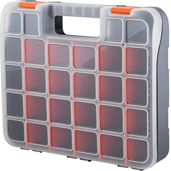 Органайзер для мелочей помогает содержать в порядке, переносить на место выполнения работ и быстро находить метизы и аксессуары. Идеален для использования дома, на даче, в гараже, мастерской, в автомобиле. Внутреннее деление на отсеки делает удобным размещение внутри органайзера деталей, которые необходимо отделить друг от друга. Съёмные перегородки позволяют изменять размер отсеков под личные нужды. Прозрачная крышка позволяет увидеть содержимое, не открывая органайзер. На крышке имеются линейки для быстрого поиска метизов необходимого размера. Удобная ручка упрощает перенос органайзера на место выполнения работ. Органайзеры одного размера скрепляются спинами, позволяя создавать двухсторонний органайзер. Благодаря плотно прилегающей крышке, исключающей смешивание содержимого, органайзер подходит для хранения самых мелких деталей, в том числе для рыболовных и швейных принадлежностей, коллекционирования, занятия хобби.