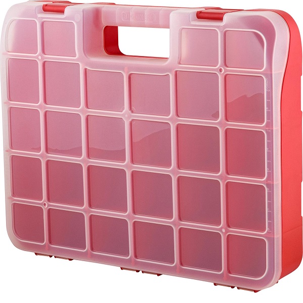 Органайзер для мелочей помогает содержать в порядке, переносить на место выполнения работ и быстро находить метизы и аксессуары. Идеален для использования дома, на даче, в гараже, мастерской, в автомобиле. Внутреннее деление на отсеки делает удобным размещение внутри органайзера деталей, которые необходимо отделить друг от друга. Съёмные перегородки позволяют изменять размер отсеков под личные нужды. Прозрачная крышка позволяет увидеть содержимое, не открывая органайзер. На крышке имеются линейки для быстрого поиска метизов необходимого размера. Удобная ручка упрощает перенос органайзера на место выполнения работ. Органайзеры одного размера скрепляются спинами, позволяя создавать двухсторонний органайзер. Благодаря плотно прилегающей крышке, исключающей смешивание содержимого, органайзер подходит для хранения самых мелких деталей, в том числе для рыболовных и швейных принадлежностей, коллекционирования, занятия хобби.