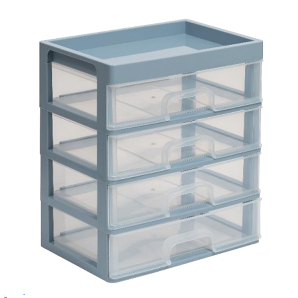 Органайзер для мелочей 4 ящика (серо-синий/прозрачный)
