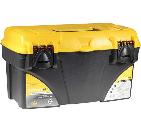 Ящик для инструментов с вкладышем и замками изготовлен из прочного безопасного пластика. Модель учитывает все нюансы для удобства переноски инструментов, в ящике предусмотрены:
