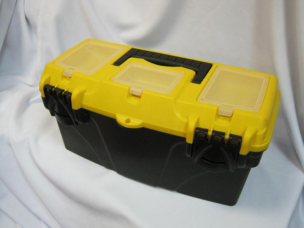 Ящик для инструментов с вкладышем и замками изготовлен из прочного безопасного пластика. Модель учитывает все нюансы для удобства переноски инструментов, в ящике предусмотрены: