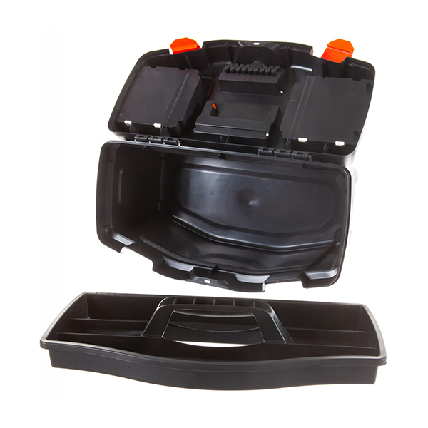 Ящик помогает содержать в порядке и быстро находить необходимые инструменты и принадлежности к ним. Идеален для использования дома, на даче, в гараже, мастерской, в автомобиле. Хранение инструментов в ящике защищает от пыли и грязи. Наличие ручки позволяет переносить инструменты на место выполнения работ. Съёмный внутренний лоток позволяет отделить инструменты и аксессуары первой необходимости от основного отсека. С помощью нанесённой на лоток размерной линейки можно быстро произвести измерения. Крышка ящика оснащена съёмными органайзерами для хранения мелочей (внутреннее пространство изменяется под потребности за счёт подвижной перегородки) и отсеком для хранения битов. Возможность использования навесного замка защитит содержимое от свободного доступа, в том числе обеспечит безопасность детей.