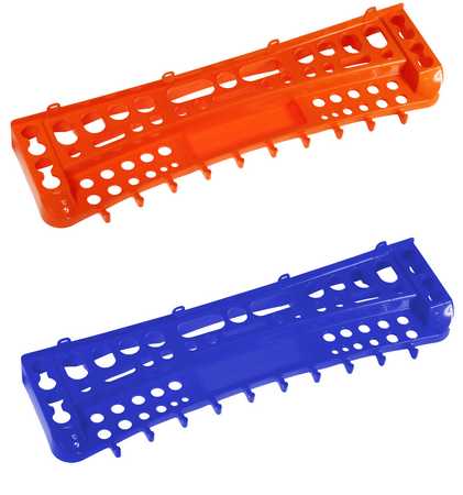 Имеет большое количество отверстий разного размера, двойных отверстий, небольшую полку для хранения мелких предметов, крючки для подвеса