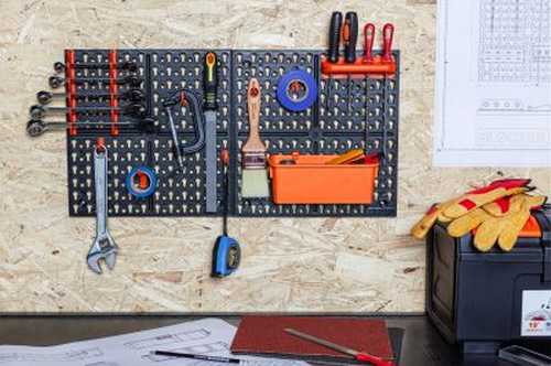 Панель помогает экономить место на рабочем столе, содержать в порядке и быстро находить необходимые инструменты и приспособления. Идеальна для использования дома, на даче, в гараже, мастерской. В комплектацию входят набор из двух типов крючков, держатели для отвёрток, свёрл, ключей и лотки для метизов. Монтаж на вертикальную поверхность осуществляется с помощью саморезов.