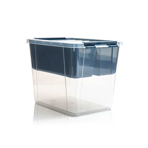 Ящик закрывается прозрачной форменной крышкой, которая предотвращает попадание ненужных предметов из внешней среды в ваш контейнер. Прочность закрытия гарантируется специальными замками-защелками.