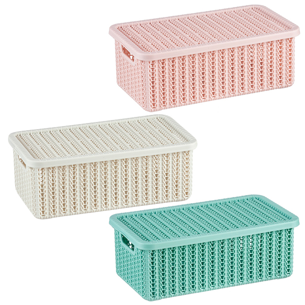 Корзинки для хранения с изящным, уютным декором, который повторяет вязание спицами, добавят уюта вашему интерьеру.