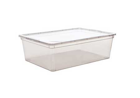 Стенки и крышка изделия выполнены из матового прозрачного пластика, позволяющего рассмотреть содержимое тары. Это значительно упрощает поиск нужной коробки, если у Вас их несколько.