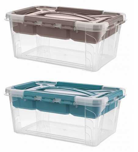 Ящик унив. "GRAND BOX" 290х190х124мм, 4,2л с замками и вставкой-органайзером голубой