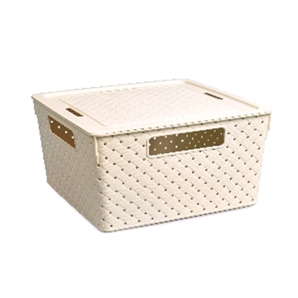 Коробка "Береста" 11л с крышкой квадр.(слоновая кость) (то)